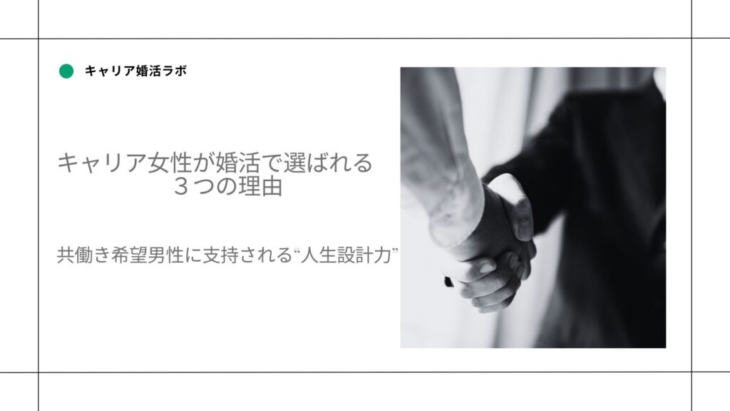 今は共働きを希望する男性が増え、キャリアを持つ女性が選ばれる時代になっています。